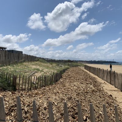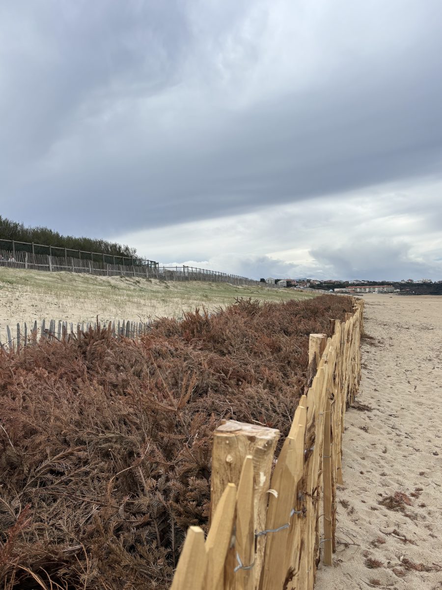 Anglet mise aussi sur des solutions écologiques pour renforcer son cordon dunaire. Des dispositifs simples – ganivelles, brandes, géofilets coco – permettent de retenir le sable et de limiter le piétinement des dunes.
