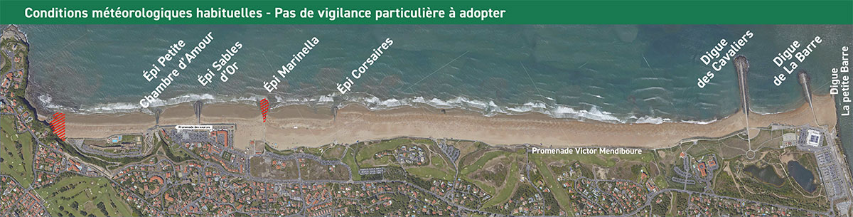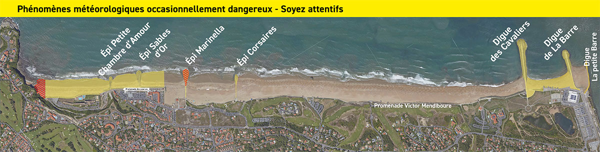 - Accès interdit aux plages : Petite Chambre d’Amour, Club, Sables d’Or, Barre